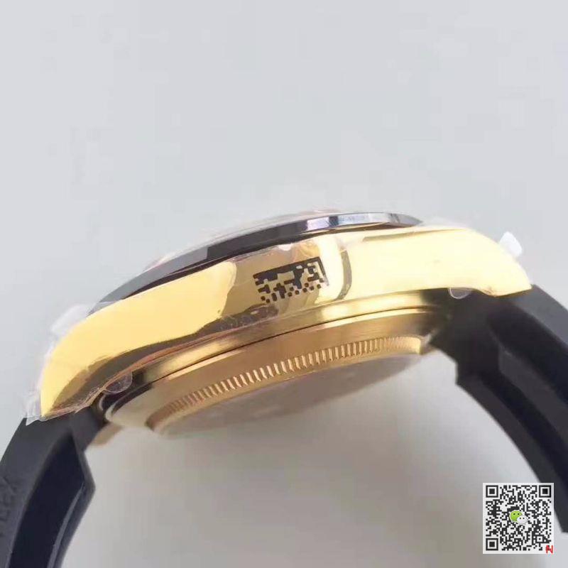 - EW factory Rolex 116718 black dial adopt real ceramic bezel with platinum font, and Swiss ETA2836 automatic movement which has stable and reliable quality, and can reserve power for a long time. The size is 40mm X 13mm, and is developed 1:1 according to original. EW factory plated yellow gold and fine grinding, and adopt 316L stainless steel bracelet which is multi-process fine grinding and never rusting or fading. EW factory Rolex GMT Master II 116718 best edition customize watch buckle, winding crown and 12 o’clock position of the dial have Rolex crown logo. The functions of EW factory Rolex GMT Master II 116718 has normal time diaplay, date and GMT display.